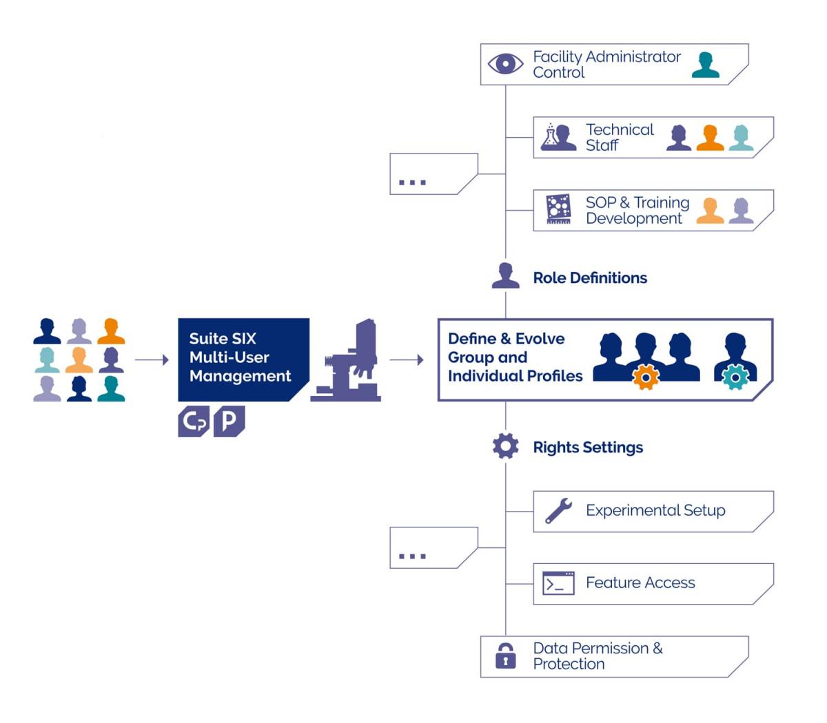 The Multi-user Management feature in the WITec Suite Software enables site administrators to determine the instrument functionalities and data access rights associated with each user account. Each user’s right to access, modify and process data can be specifically defined via individual or group profiles.